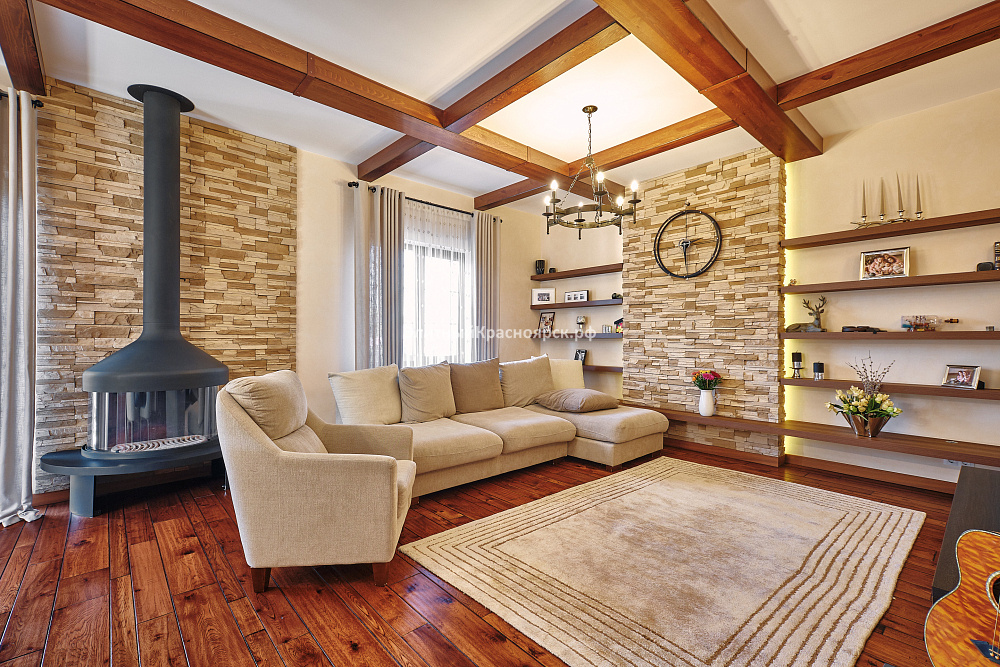 Комментирует Филипп Мягков, риелтор АН “Элитный Красноярск”: “Вот пожалуйста, тот дом с современным новым ремонтом. Именно такие дома требуют от нас покупатели. Красивый и технологичный. В поселке прекрасная управляющая компания".