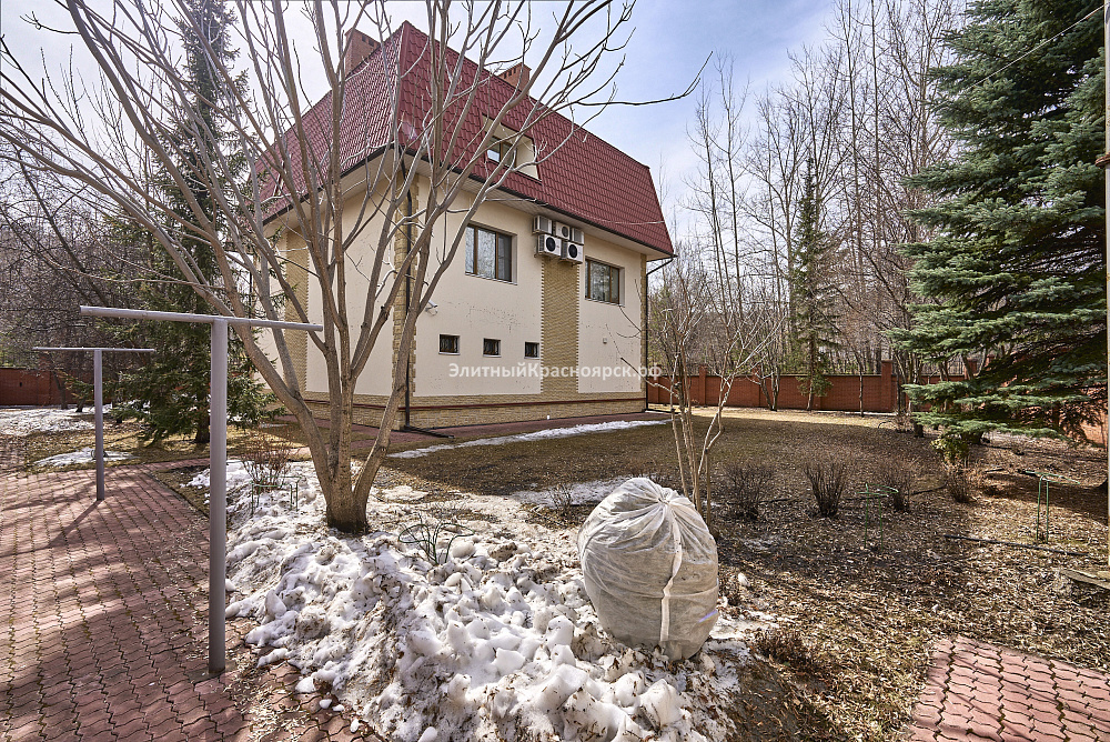 Дом строился для семьи — с запасом по площади и понятной планировкой. Расположен на участке, где всего два одинаковых дома, без плотной застройки вокруг. Территория закрыта взрослыми деревьями, за счёт этого участок ощущается более уединённым.