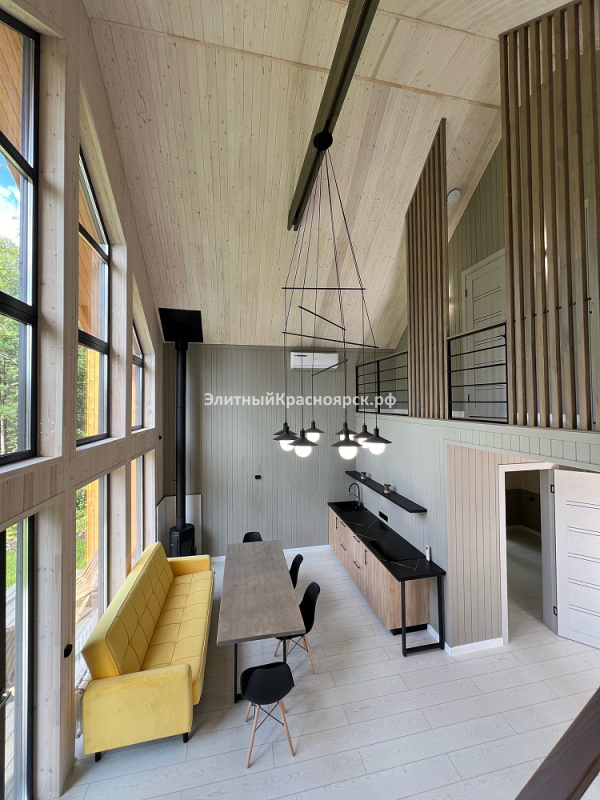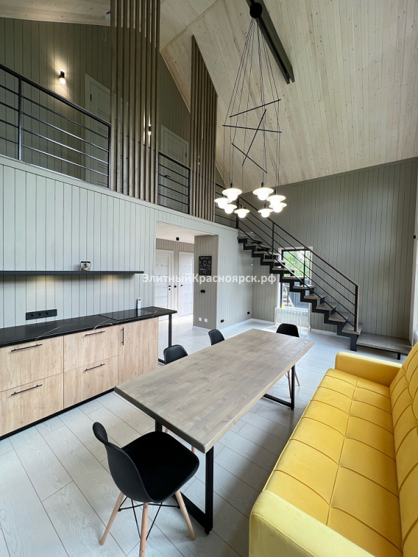 Комментирует Денис Курашов, риелтор АН “Элитный Красноярск”: ”Покупатели таких домов - люди, которым важен современный стиль, им неинтересны каменные хоромы на века. Большие окна дают обзор, пропускают максимум естественного света. Внутренняя отделка дома основана на естественных текстурах и материалах. На первом этаже расположена гостиная совмещенная с кухонной зоной с выходом на террасу, спальня, санузел, техкомната, прихожая. На втором этаже две спальни. Дом продаётся со всей мебелью».