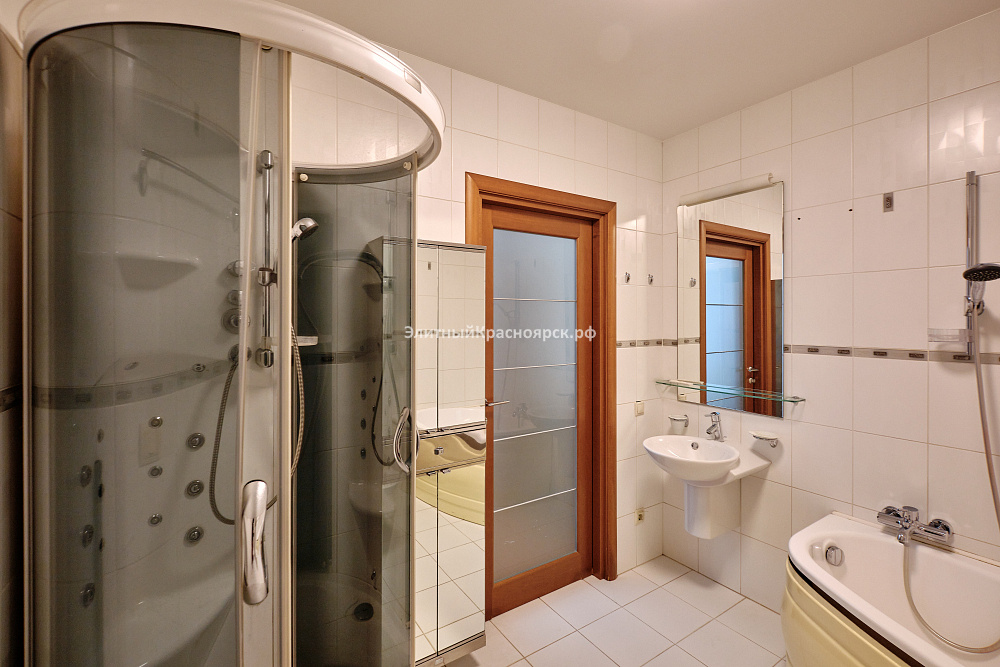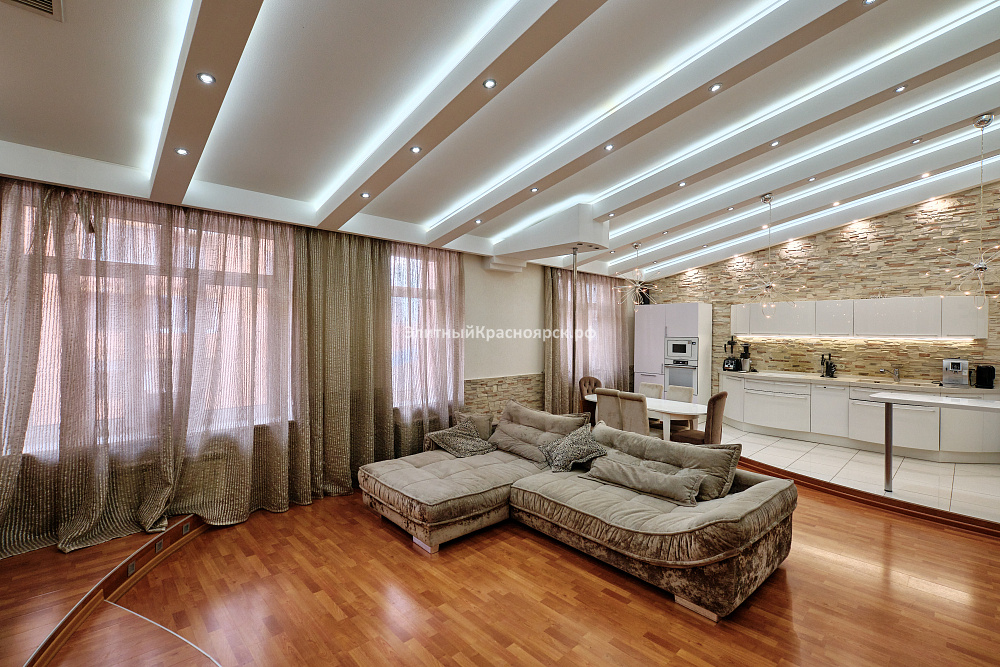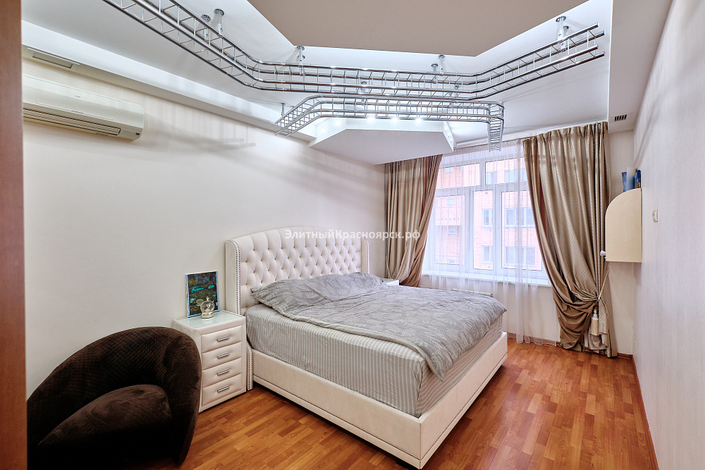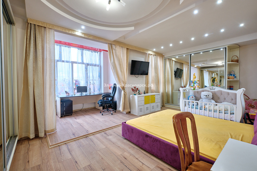 Это большая квартира с четырьмя спальнями, находящаяся на одной из самых уютных улиц города Красноярска. Сейчас девелоперы таких не строят, ведь действительно, на весь дом всего 40 квартир: по две квартиры на этаже. С учетом внушительного перечня инфраструктуры, которая находится непосредственно в доме или в шаговой доступности, мы можем смело назвать этот дом клубным. Здесь есть подземный паркинг, рестораны, парковая зона, супермаркеты, школа, фитнес-центр и многое другое.
