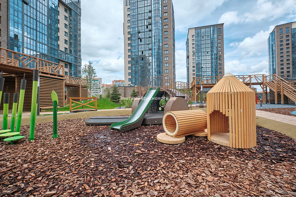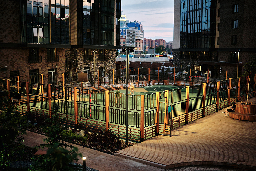 Отличительная черта этого предложения – шикарная территория комплекса, возможно, лучшая в городе. Свой отдельный мир посреди шумного мегаполиса, в котором тихо, уютно, красиво, зелено, где интересно проводить время и детям, и взрослым. Изюминка жилого комплекса – собственное озеро на территории.
