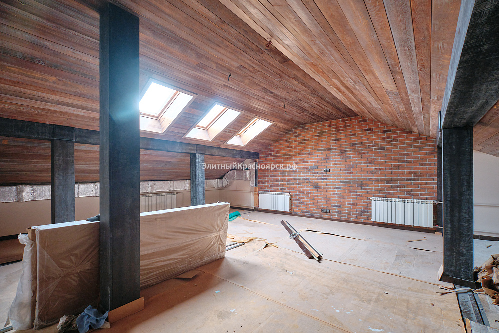 На мансардном этаже обустроена сауна и просторная зона отдыха, планировалась бильярдная комната.