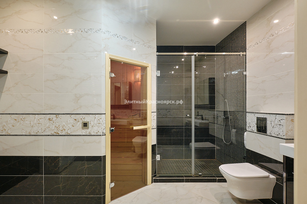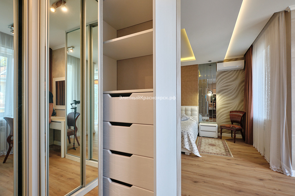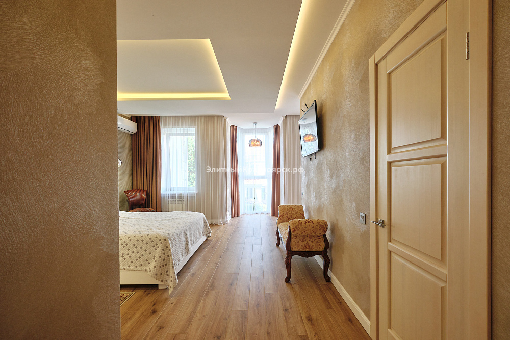 Комментирует Ирина Протасова, риелтор АН “Элитный Красноярск”: “Выделю в этом предложении уютную, приватную террасу с зеленым газоном и барбекю зоной. Кухня со столовой отделены от гостиной. Третий этаж сделан как отдельное пространство для отдыха или общения, при этом там легко можно разместить гостей, так как есть свой санузел. Три спальни оптимально расположены на втором этаже, а в основной спальне имеется два гардероба и свой санузел.