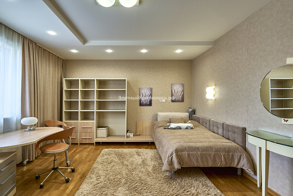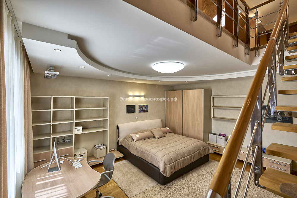Одна из спален — двухуровневая, с выходом на мансарду, её можно использовать как отдельную зону отдыха, кабинет или просторную спальню.