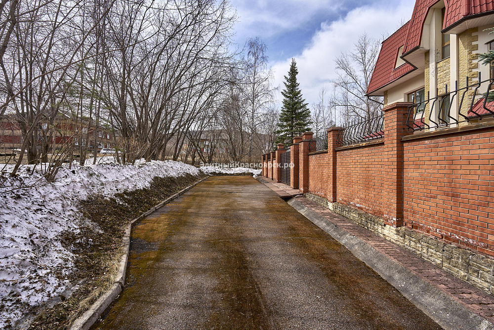 Дом строился для семьи — с запасом по площади и понятной планировкой. Расположен на участке, где всего два одинаковых дома, без плотной застройки вокруг. Территория закрыта взрослыми деревьями, за счёт этого участок ощущается более уединённым.