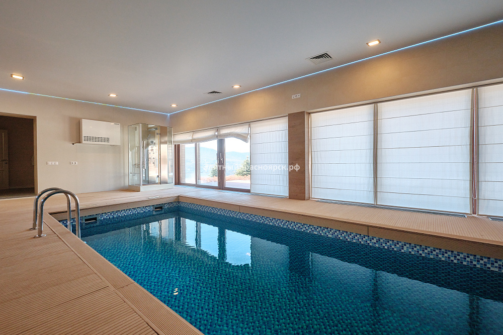 Подземная парковка представляет собой гараж на несколько автомобилей, где легко поместится небольшой катер. Он оборудован водопроводом и канализацией. Спа: после выхода с парковки мы попадаем в СПА-комплекс, который представляет собой отдельно стоящее здание с панорамными окнами и бассейном длиной 9 метров. Здесь есть и сауна, и хамам, а также беседка для барбекю с самым идеальным видом!