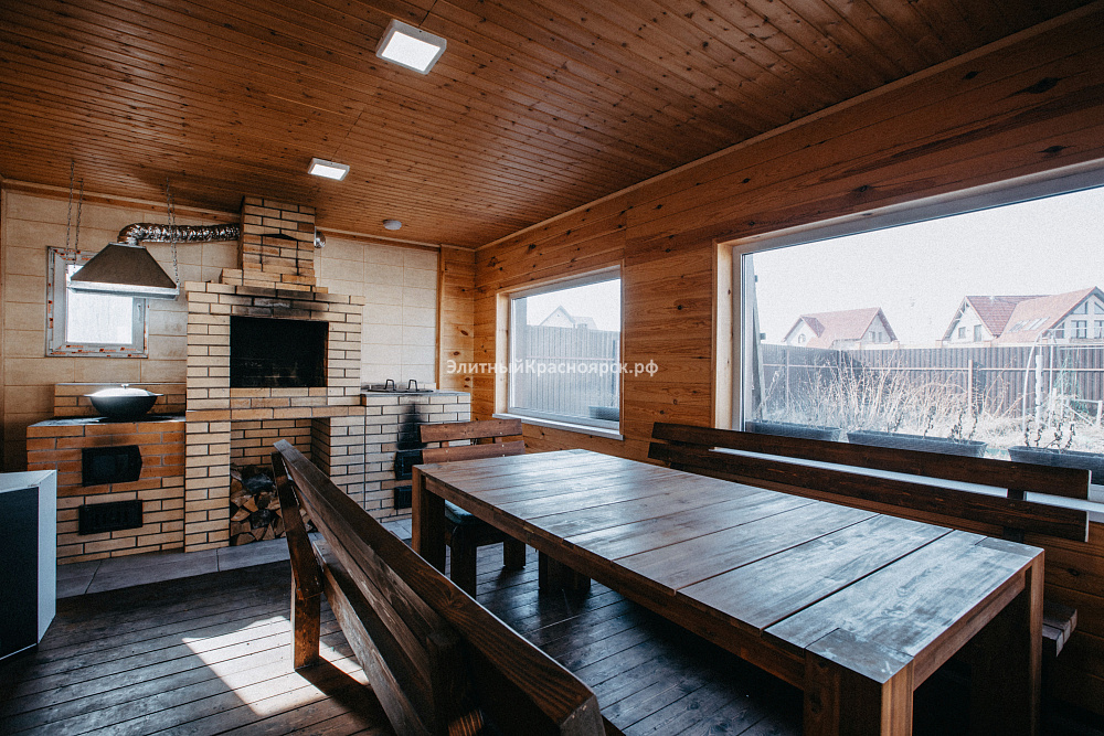 В доме две спальни и кабинет(легко переделать в третью спальню), кухня-столовая с выходом на террасу, гостиная с камином, бильярдная с баром, кинозал, по санузлу на каждый этаж, подсобные помещения. На участке русская баня, павильон для барбекю. Дом жилой и сразу после покупки может радовать новых хозяев!