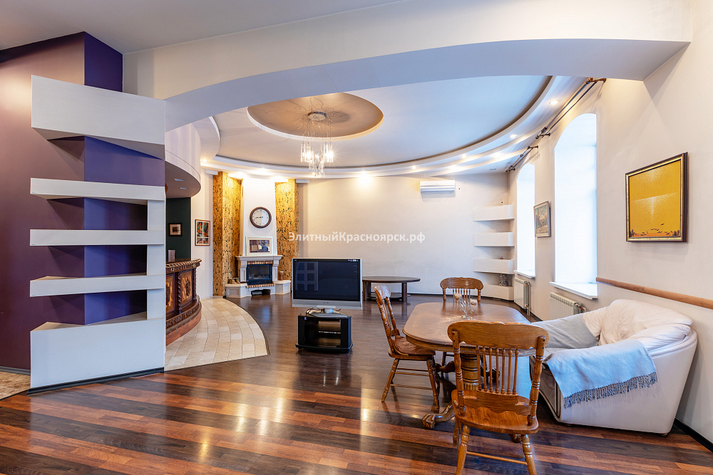 И в нем просторная четырехкомнатная квартира 230 кв.м. с высокими потолками.