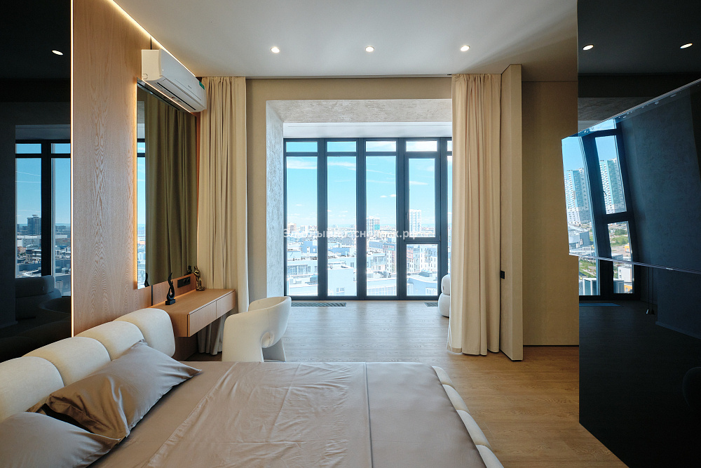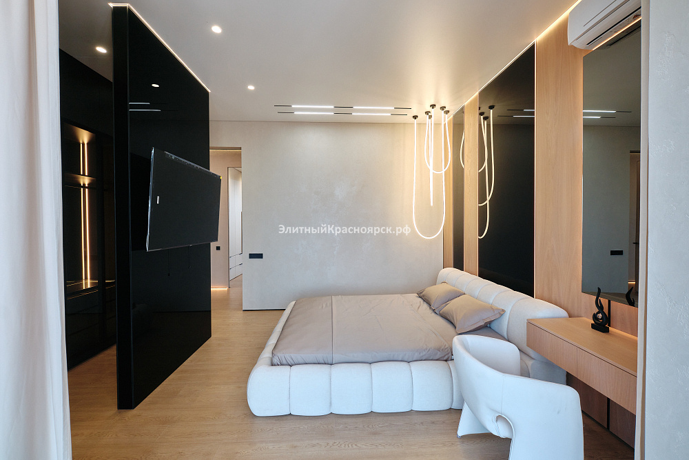 - светлая красивая хозяйская спальня со стильной и функциональной гардеробной;