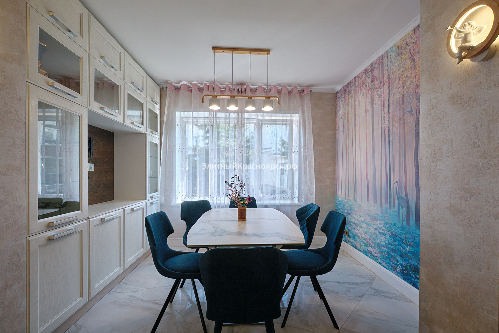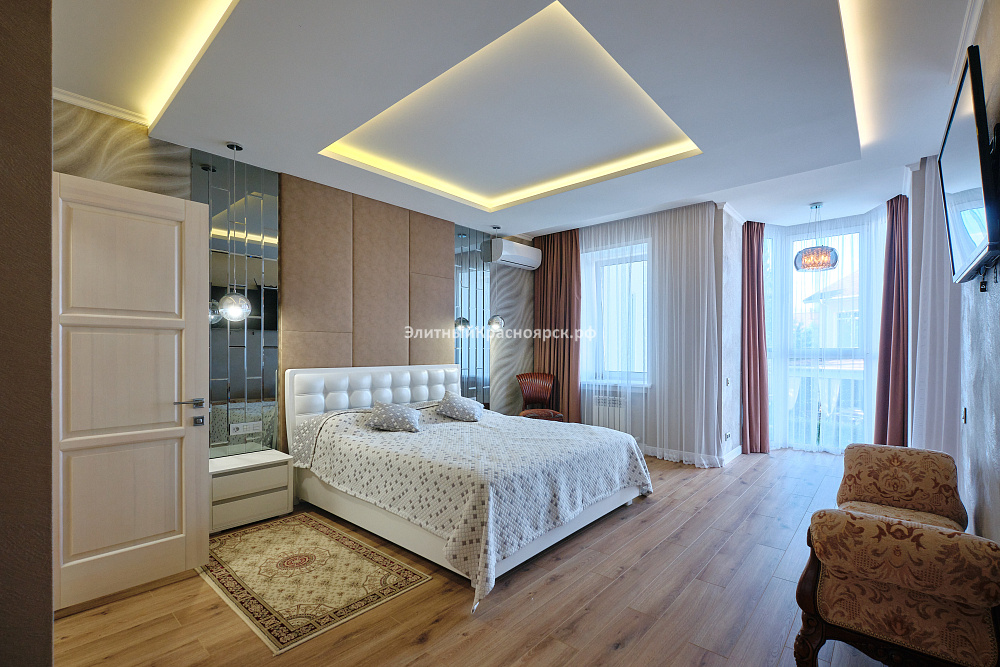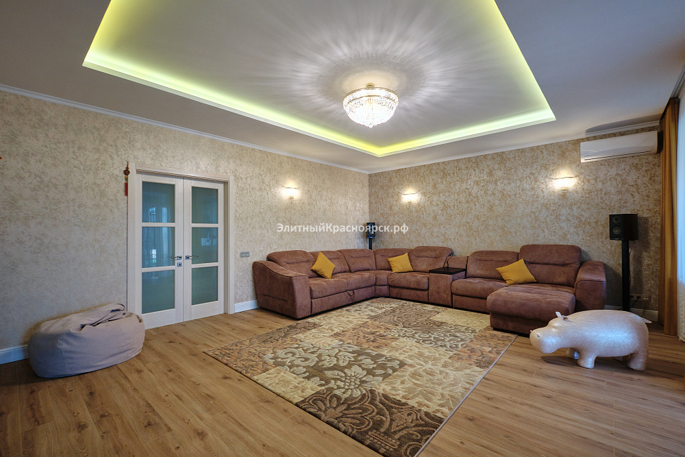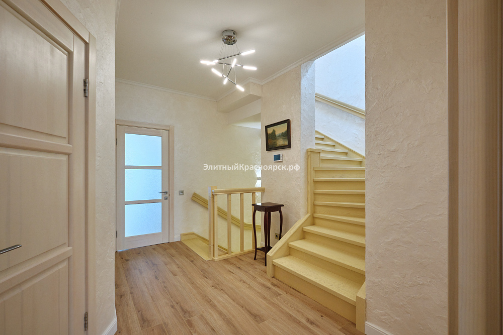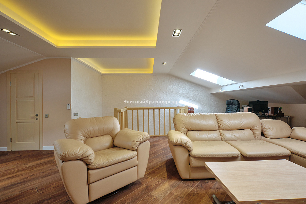 Комментирует Ирина Протасова, риелтор АН “Элитный Красноярск”: “Выделю в этом предложении уютную, приватную террасу с зеленым газоном и барбекю зоной. Кухня со столовой отделены от гостиной. Третий этаж сделан как отдельное пространство для отдыха или общения, при этом там легко можно разместить гостей, так как есть свой санузел. Три спальни оптимально расположены на втором этаже, а в основной спальне имеется два гардероба и свой санузел.